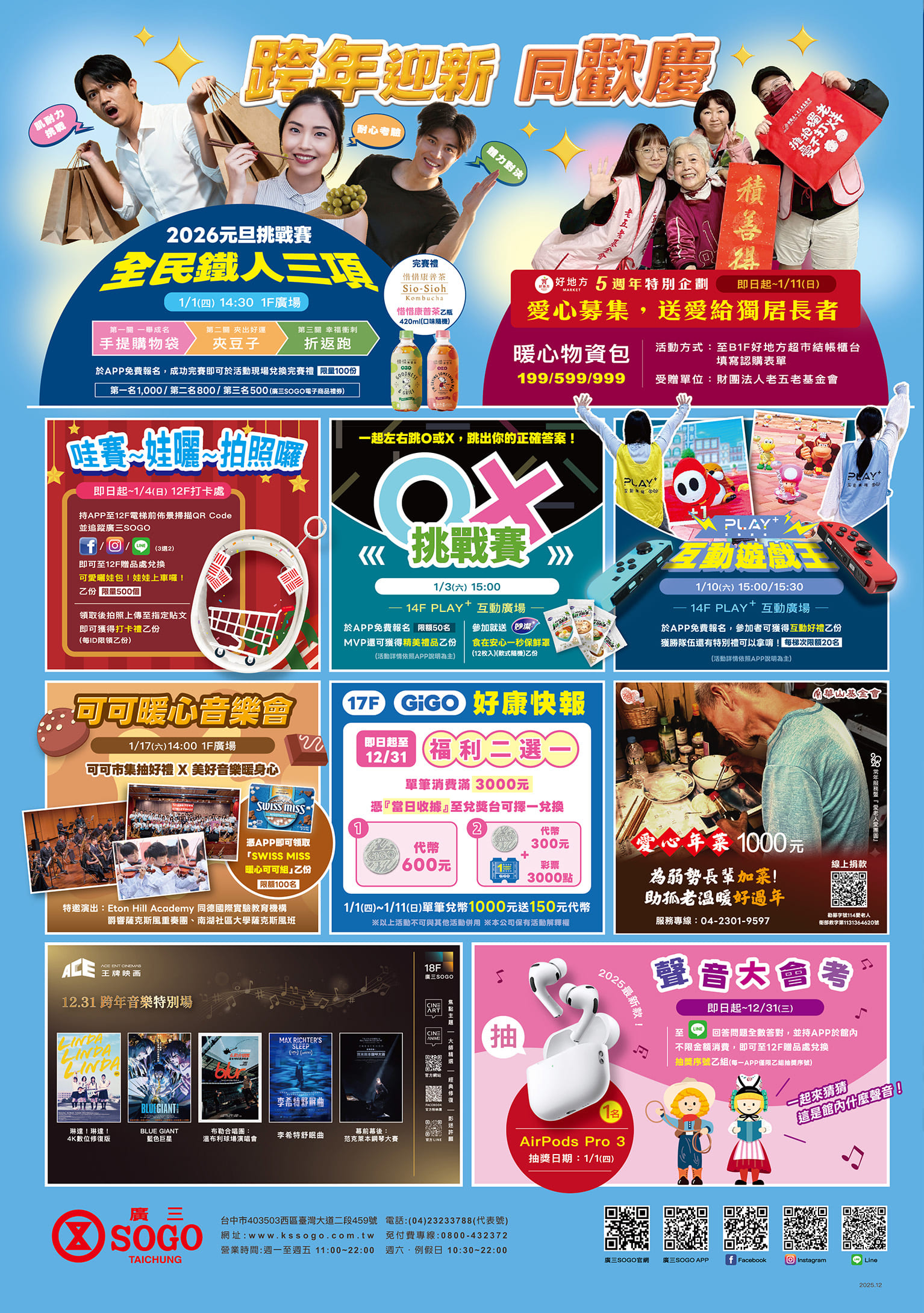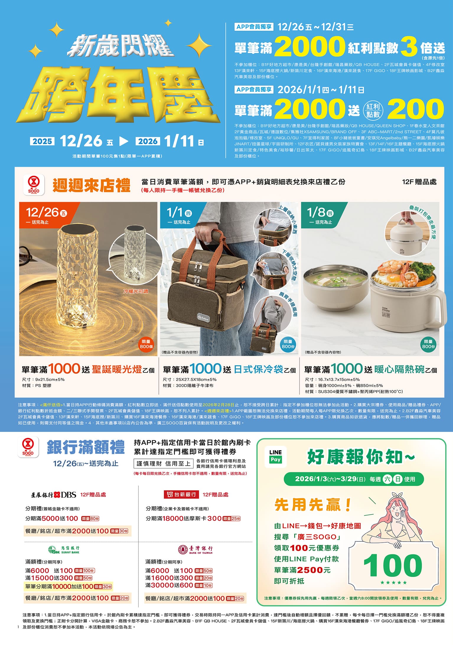 • 12/26~12/31單筆滿2000點數3倍送• 2026/1/1~1/11單筆滿2000送200點• 13F 開飯川 2026/1/3(六) 盛大開幕
