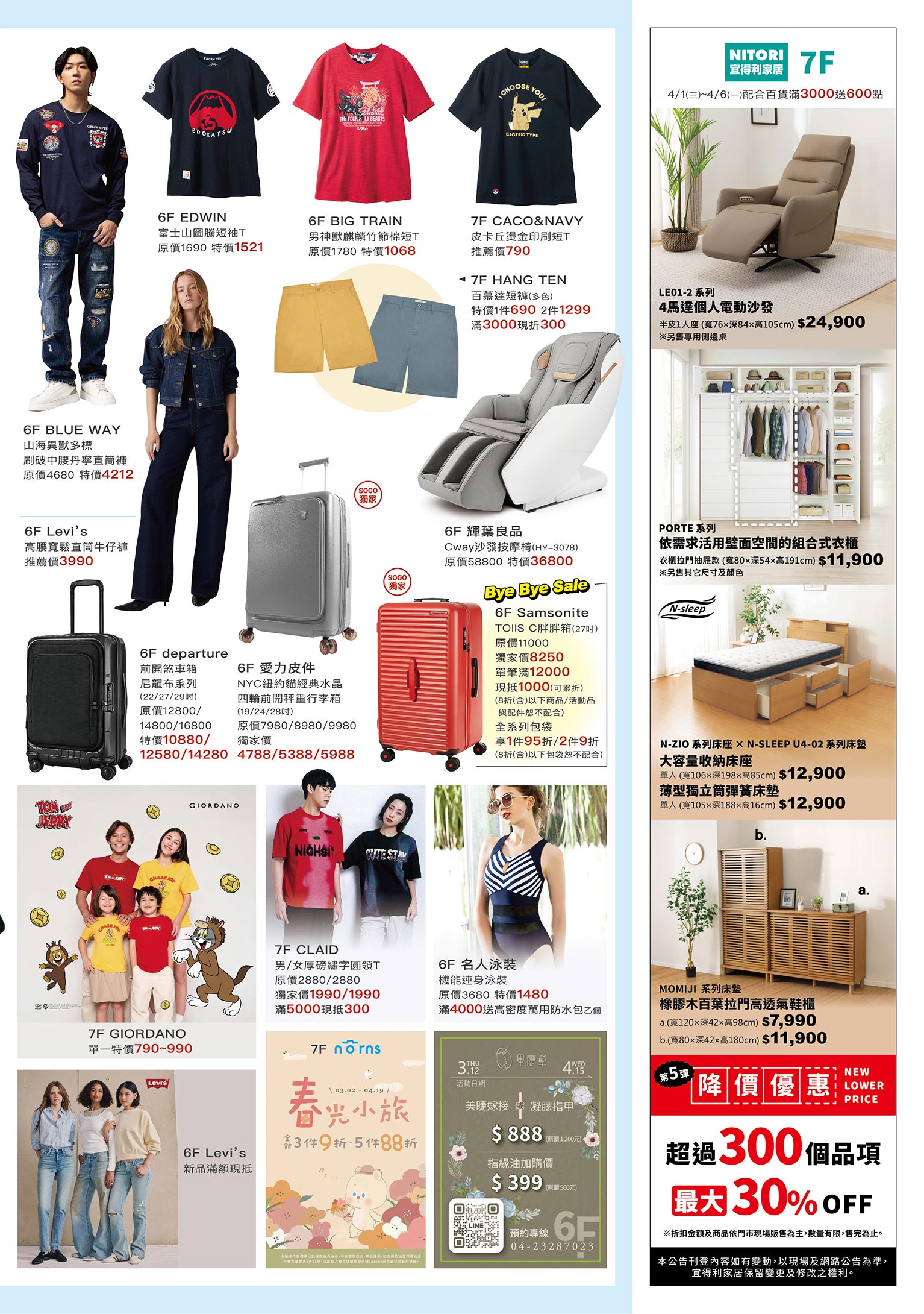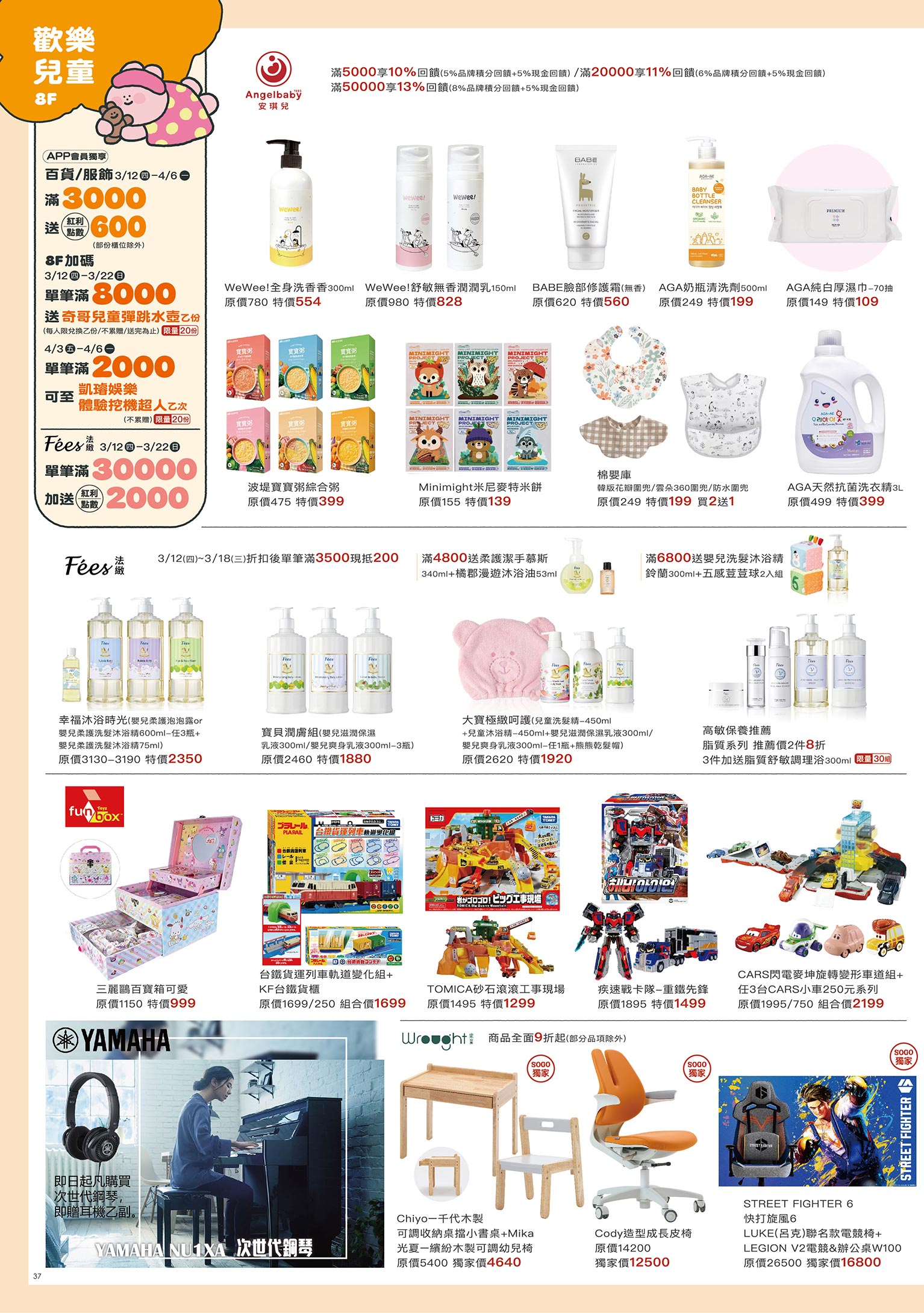 3/18(三)~4/15(三) 3/12(四) 全店預購同享滿仟送佰