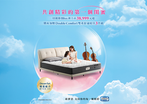 活動期間至11F席夢思專櫃賞床體驗,即可獲得「來店小禮物」乙份,邀您一起寵愛最重要的她 (數量有限,送完為止)