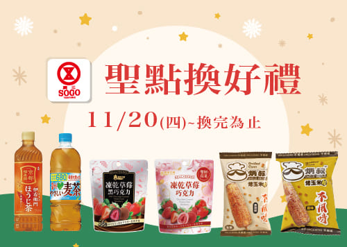 與1F廣場聖誕樹合照打卡FB指定貼文留言分享 / IG打卡並標記#廣三SOGO ,即可至12F贈品處兌換精美贈品。