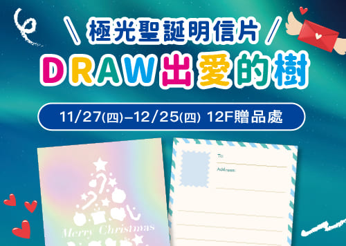 憑APP領取聖誕限定明信片,畫出你的專屬極光聖誕樹DRAW出愛的樹,寄給最愛的人吧 !